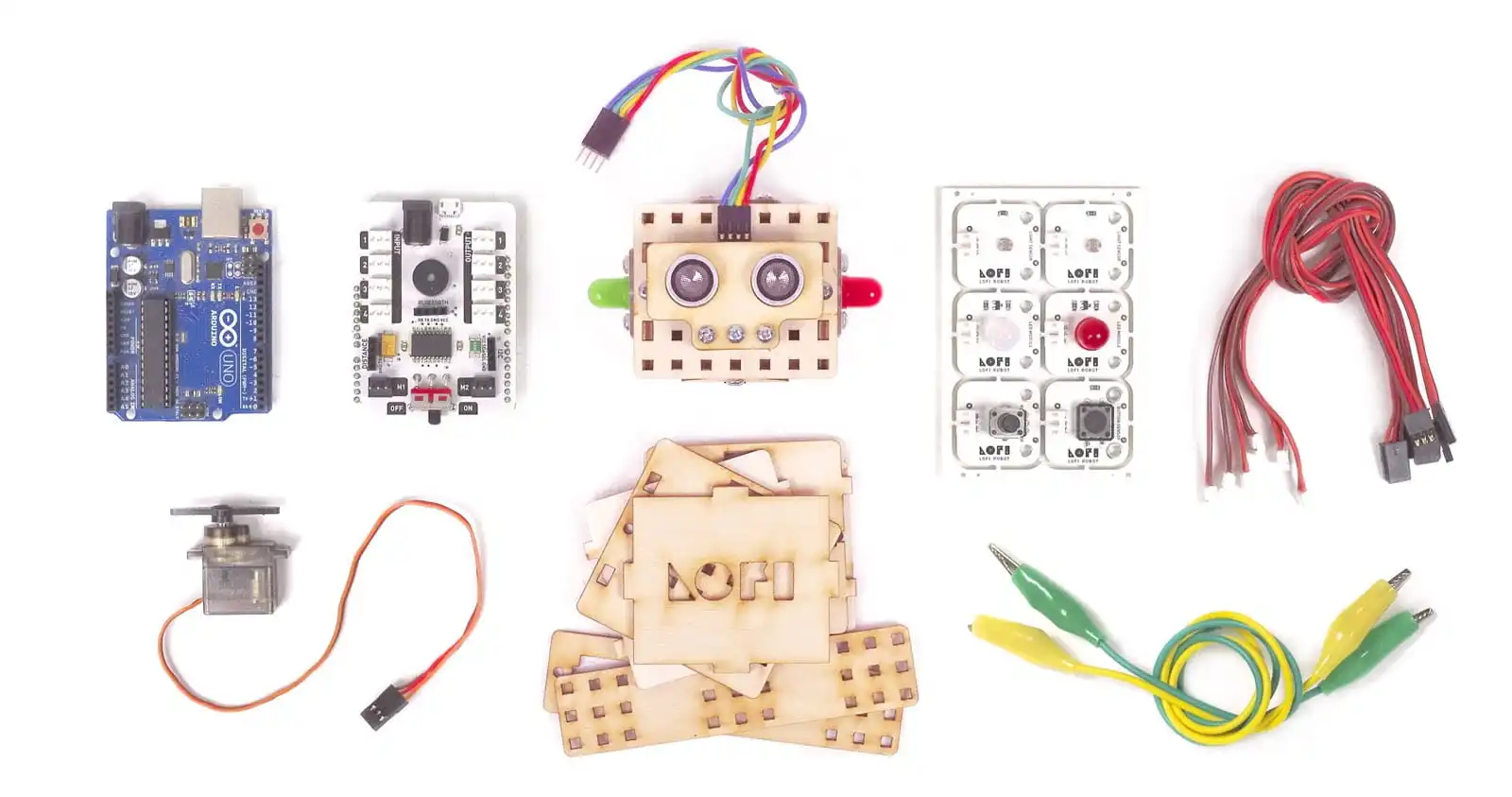 Lofi Robot – Jest to zestaw polskiej produkcji, który pozwala na łatwe i szybkie zbudowanie robotów z wykorzystaniem laserowo wycinanych drewnianych elementów i rozmaitych czujników. Zestaw pozwala na tworzenie własnych konstrukcji. Moduł główny oparty jest o Arduino przez co możliwe jest programowanie zarówno w graficznym środowisku dostępnym na stronie producenta, jak i w oryginalnym środowisku programistycznym Arduino.