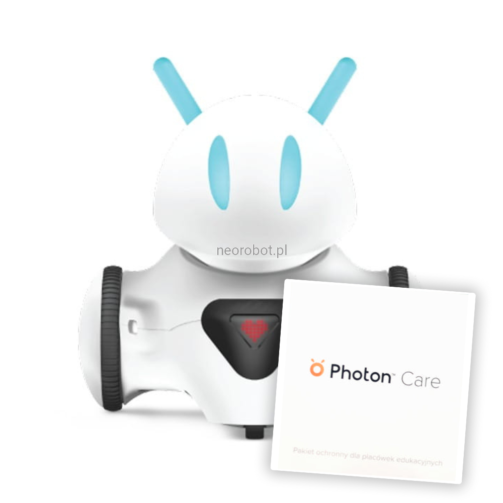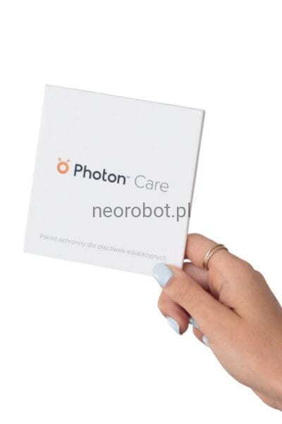 Photon Care to specjalnie stworzony pakiet ochronny przed nieszczęśliwymi wypadkami, przeznaczony do wymagającego środowiska szkolnego. Kupując robota z pakietem Photon Care, otrzymasz kopertę z unikalnym kodem. Po zarejestrowaniu go na naszej stronie, Twój robot będzie objęty rozszerzoną gwarancją przez 5 lat.